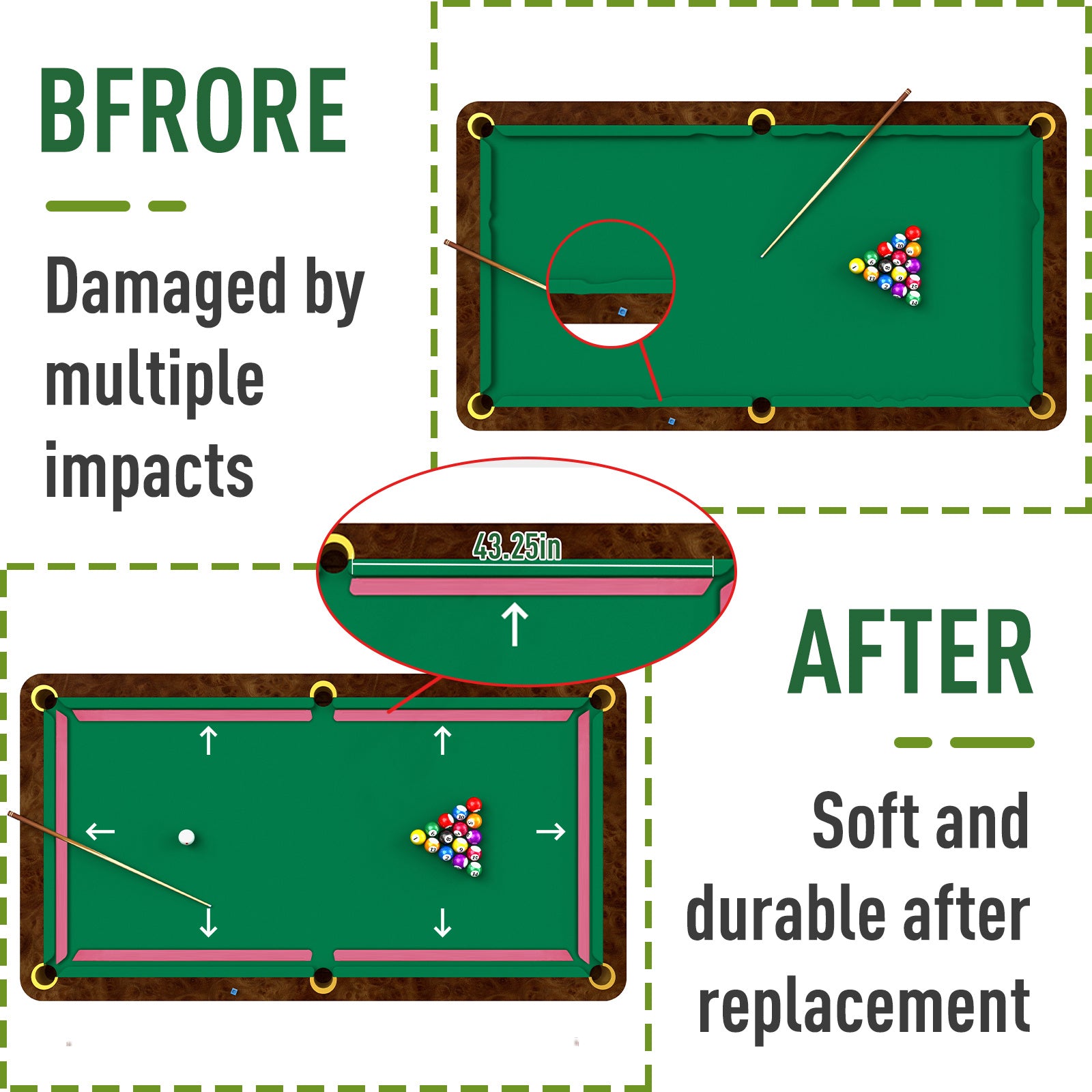 6pcs of Billiards Table Rubber Buffers | 8-Foot Billiards Table Track Pad Replacement Additions, Mixed Color Rubber Material